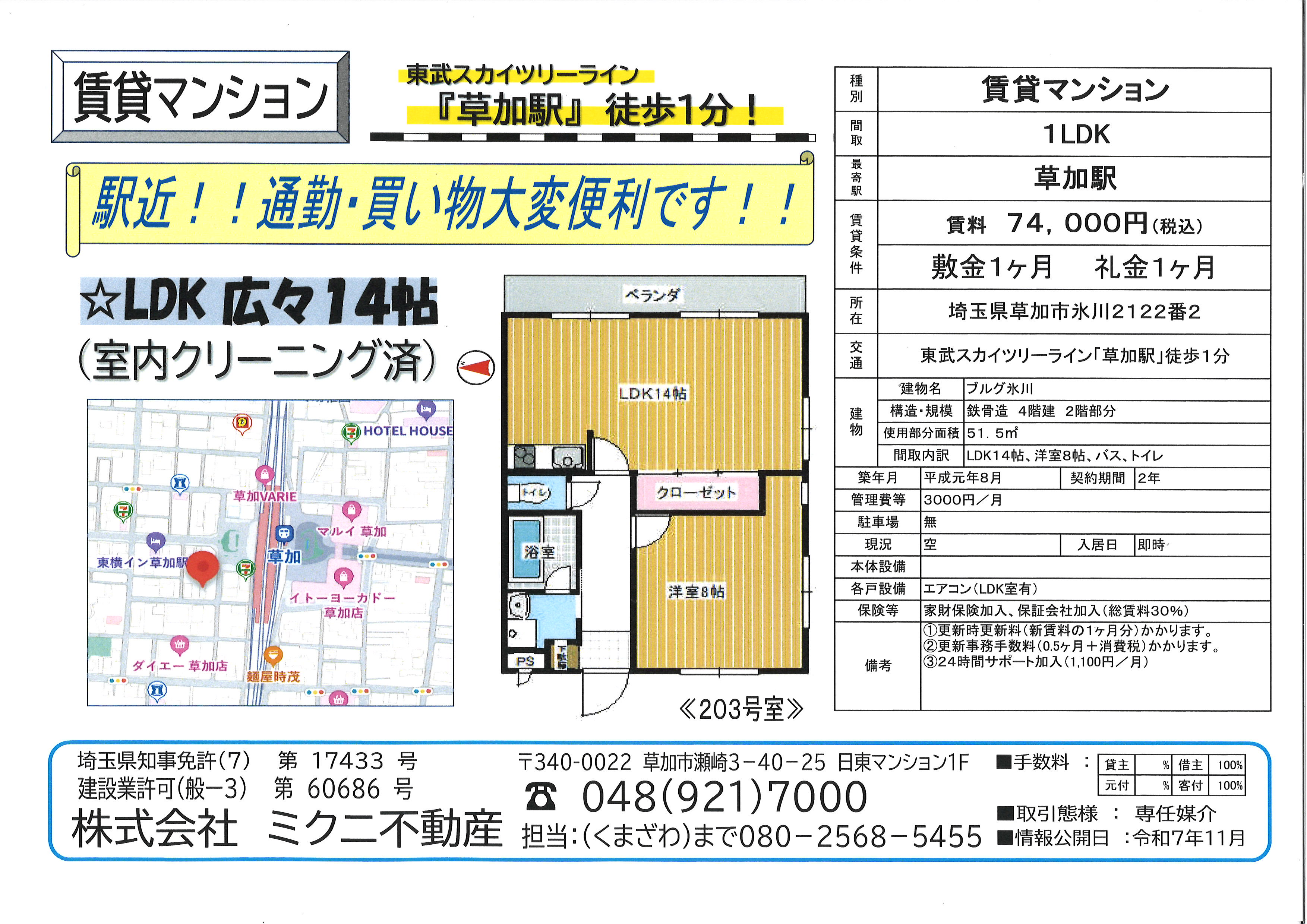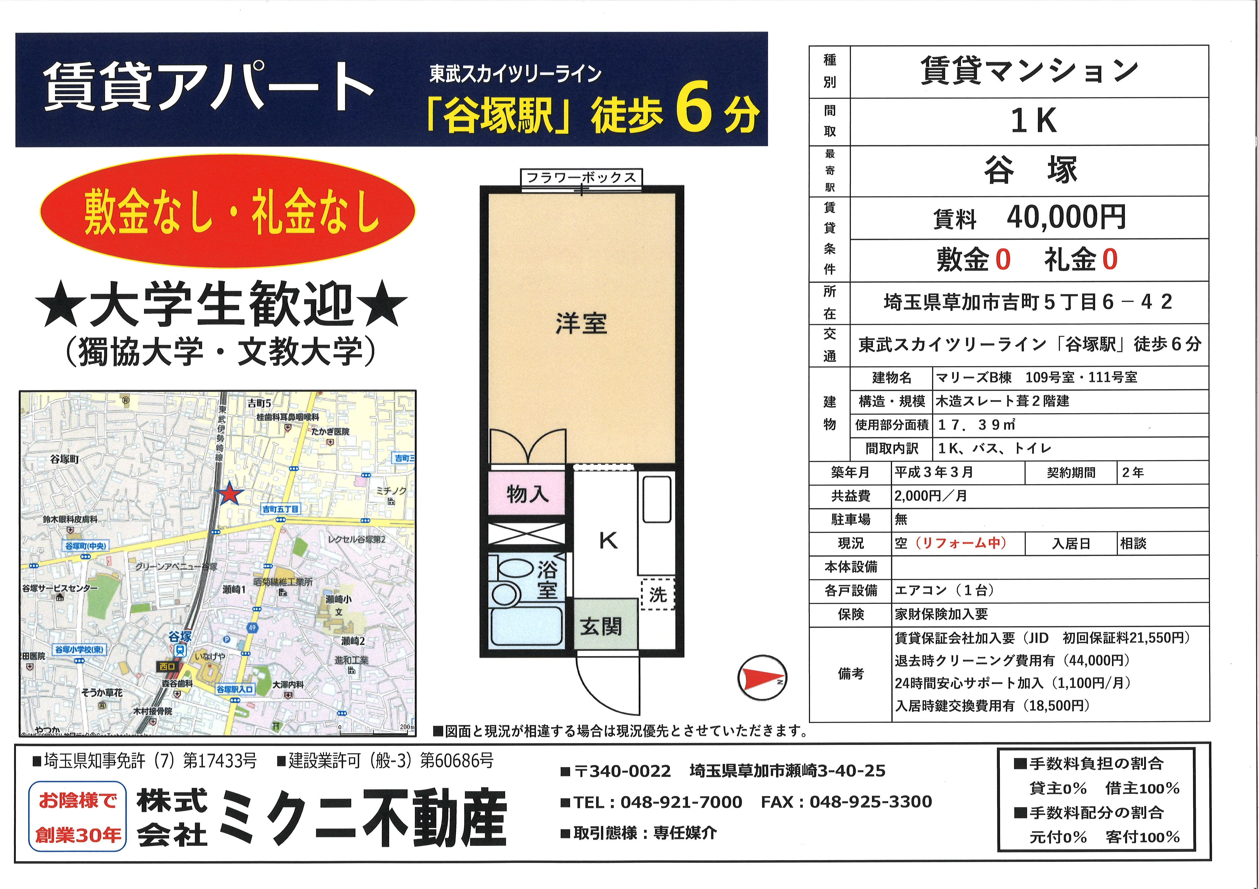 最寄り駅:東武スカイツリーライン草加駅 徒歩20分